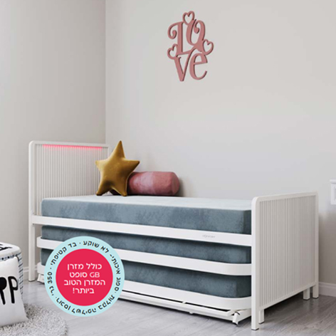 מיטה משולשת כולל 3 מזרנים בציפוי בדי קומפורט.