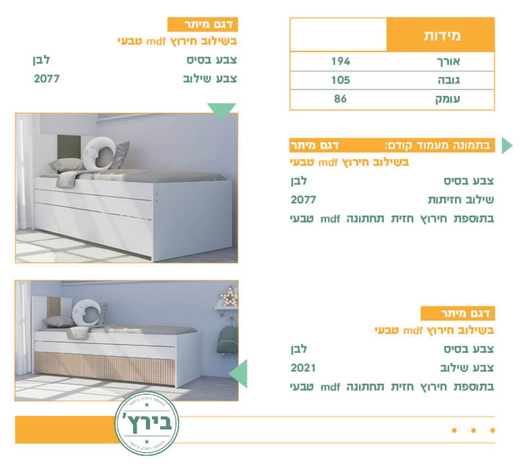 • תוכלו לקבל את המיטות בכל גודל / כמות שתרצו בתוספת תשלום.