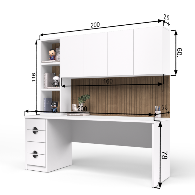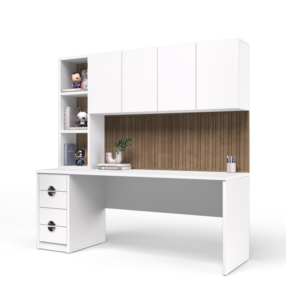 שולחן ומקום עבודה מיוחד ומושך את העין עם 4 מגירות לאחסון פריטים, ומדפים פתוחים שנועדו לספק ניצול אידיאלי של החלל בכל חדר.